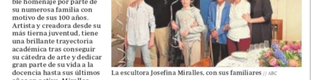 Recientemente tuvo lugar el cien cumpleaños de la escultora Josefina Miralles Guas, hija del notario Claudio Miralles Gaona, el cual era hijo de José Miralles y de María Gaona.