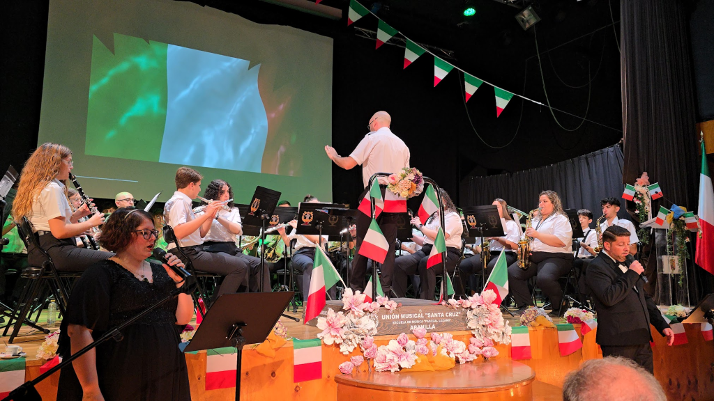 Desde allí fueron al restaurante Los Capachos donde descansaron y se tomaron un refrigerio, para a continuación entrar al Auditorio a escuchar el concierto de música italiana que había preparado la Unión Musical Santa Cruz, el cual contó también con la participación del tenor Jesús Hernández y la soprano Marina Ibáñez Torrano.